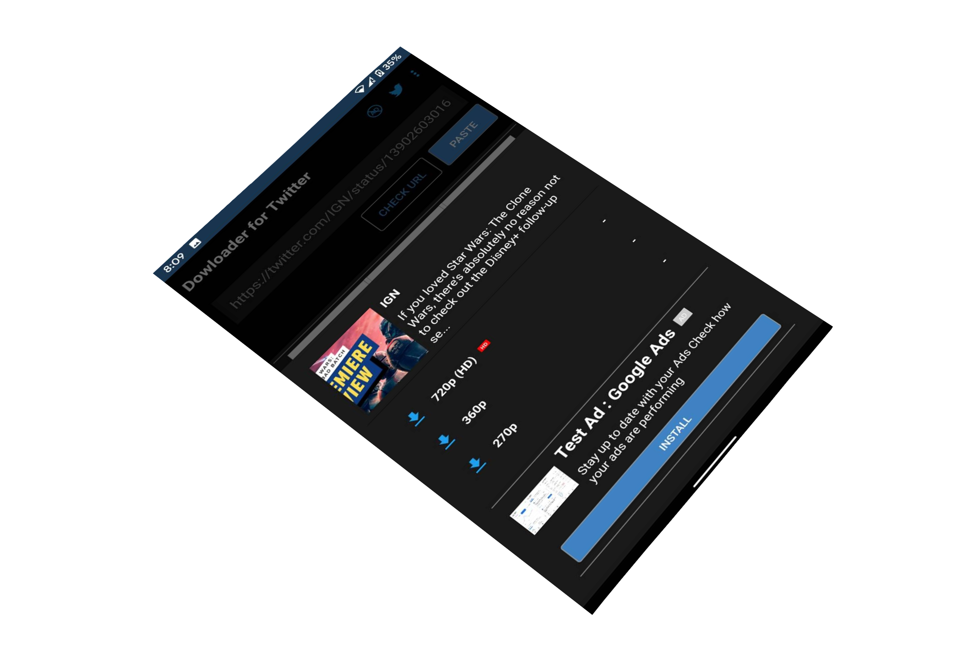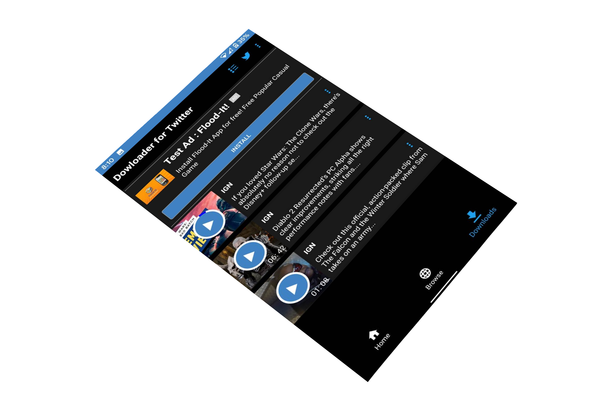 Twitter downloader for the same whose AVD I worked on. This app also has all the functionalities as AVD but is specific for twitter and can download videos from twitter with a little exception that it has an Built in Black and white Themes and Built in directory selector.